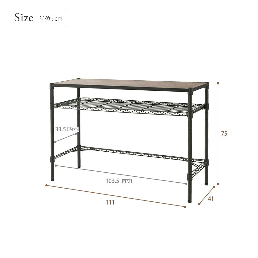 シェルフ内寸 幅103.5×奥行33.5cm 耐荷重 耐荷重(棚板1枚あたり)スチールシェルフ・ウッドシェルフ:80kgスライドシェルフ:15kg※耐荷重の値は、スチールシェルフ(棚)全面に、均等に荷重をかけた場合の値になります。