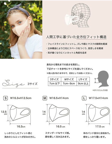 人間工学に基づいて設計されたデザインのため顔にしっかりフィット しつつ、口元にスペースをつくり、息苦しさを軽減します。