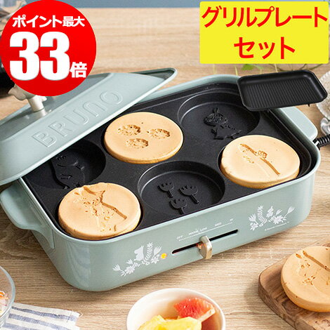 ブルーノ BRUNO ムーミン コンパクトホットプレート グリルプレートセット ブルーグリーン たこ焼きプレート パンケーキ グリルプレート 2〜3人用 BOE059